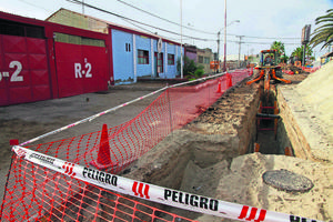 Reubican carros de bomberos por obras sanitarias frente al cuartel