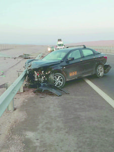 Asaltantes huyeron con taxi y lo chocaron en la carretera
