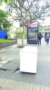 Refrigerador botado en el centro