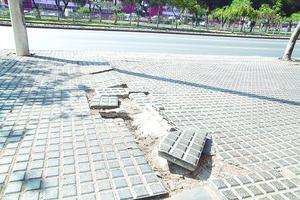 Baldosas levantadas en avenida Grecia