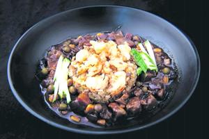 Porotos negros con camarones