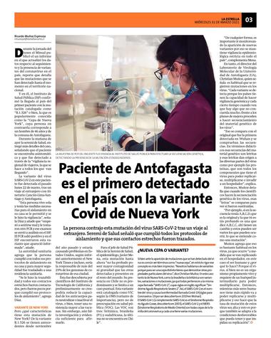 Paciente de Antofagasta es el primero detectado en el país con la variante Covid de Nueva York