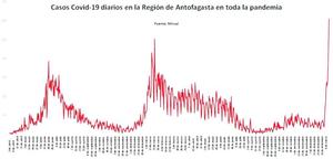 Se disparan los contagios: región llega a 600 casos, el récord de la pandemia