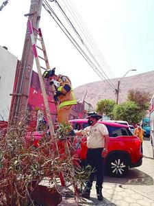 Bomberos rescatan a un gatito que estaba en lo alto de un poste