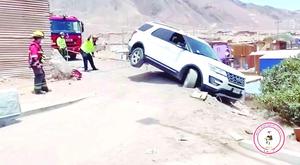 Auto quedó a punto de caer sobre viviendas