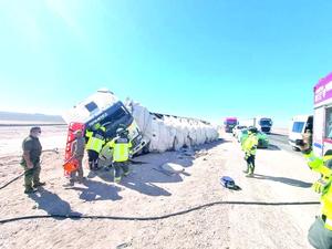 Volcamiento de un camión en la Ruta 5 Norte deja un herido grave